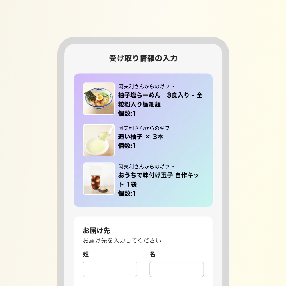 When you want to send a gift to someone whose address you don't know, or when you want to send a gift right away, you can easily send a gift from your smartphone!